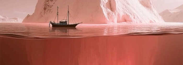 דמיינו קרחון אדיר בלב ים סוער.