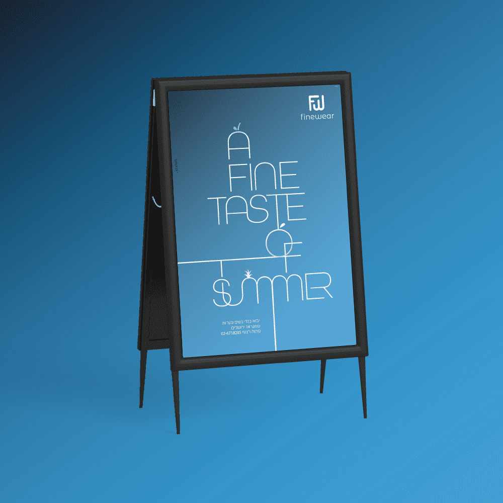 בחרנו בשפה עיצובית קלאסית וטרנדית, שתאפשר פיתוחים אינסופיים ותשמור על חוויית המותג הגבוהה של פיינוואר. הקווים הנקיים, הצבעים המדויקים והטיפוגרפיה האלגנטית יוצרים בסיס יציב לפרסום חדשני, כריזמטי ונאמן למהות המותג, Fine בגובהו ובסטייל שלו.